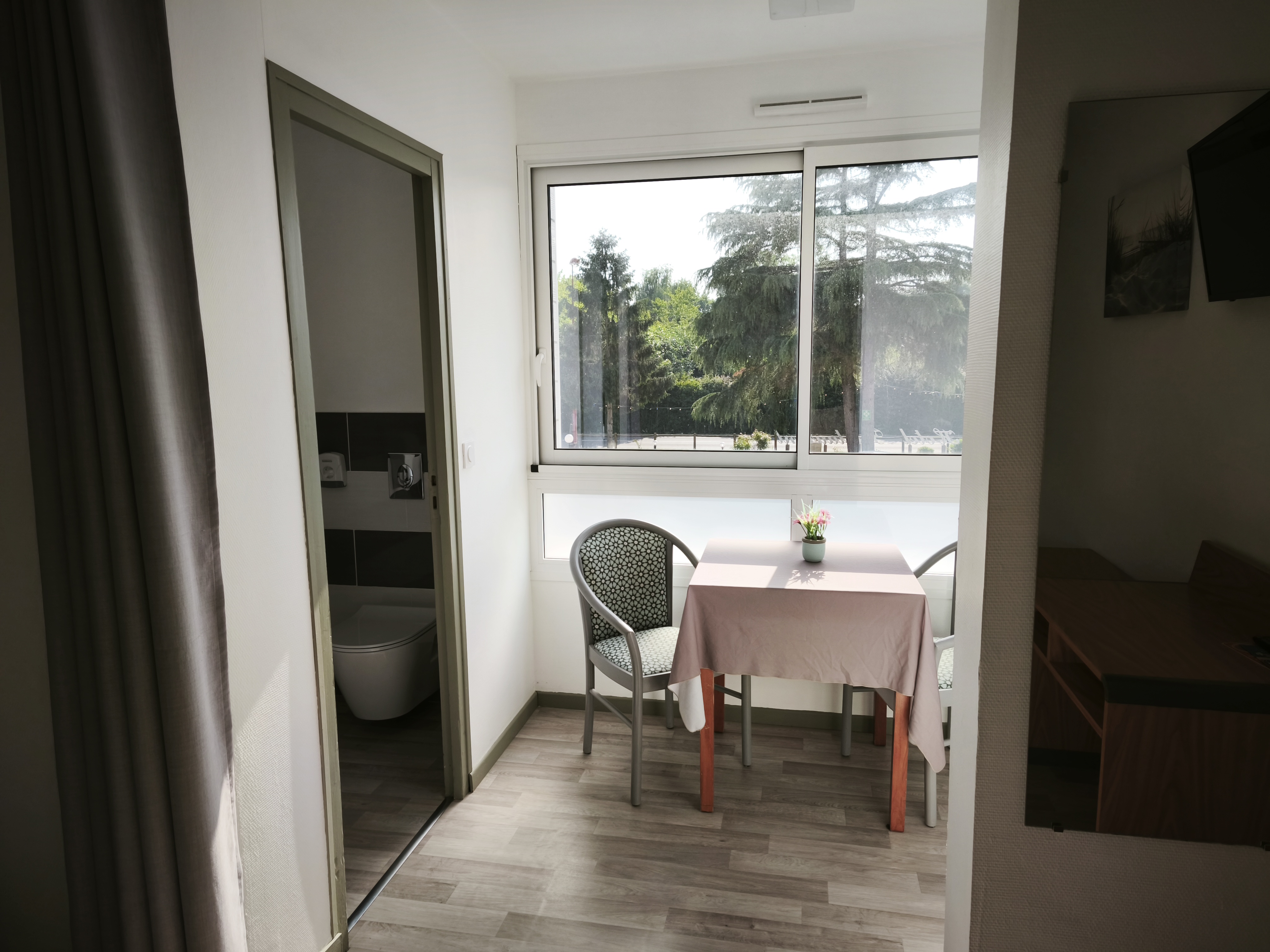 La chambre double dispose d'une salle de bain privative avec douche et sèche-cheveux, de WC séparé, de la climatisation et d'une armoire. Elle dispose également d'une télévision à écran plat, du chauffage, d'un bureau et d'un petit coin détente.